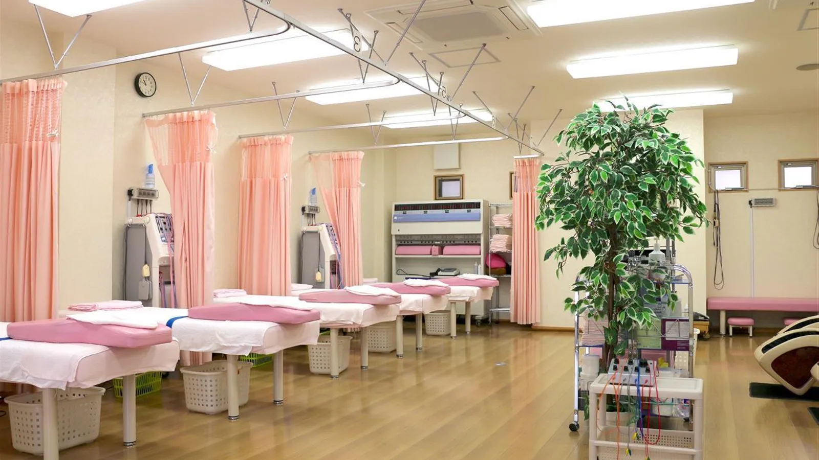 グリーン・ベージュ・暖色系を基調に、身体を預ける場所として安心できる温かみのある印象を演出します。